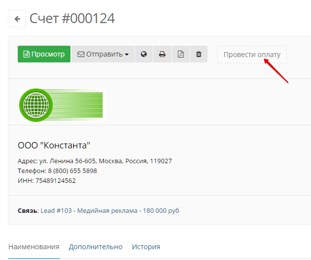 После создания счета сотрудники фирмы «Константа» не могут сразу отправить его или распечатать клиенту. Ведь даже несмотря на то, что менеджеры выставляют счета по готовым шаблонам, они могут в спешке забыть указать количество услуг или материалов, без согласования указать скидку, неловким движение мыши удалить нужную позицию.
