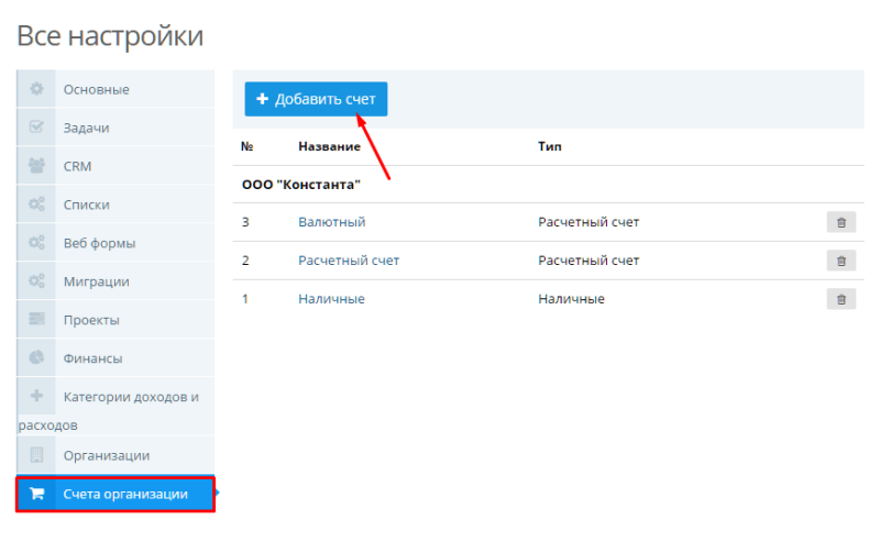 Шаг 2. Создаем счета организаций