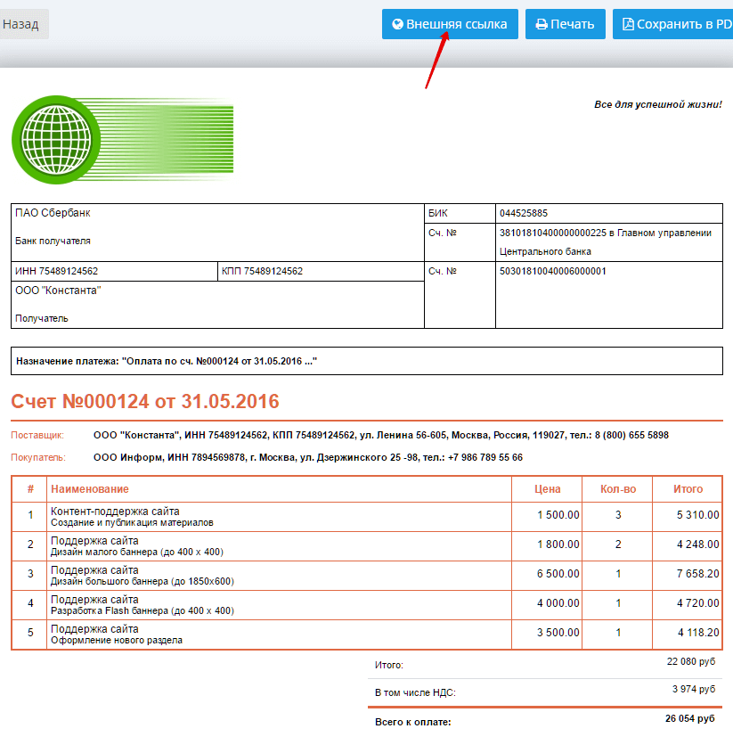 Часто менеджеры отправляют клиенту прямую ссылку на счет. Так получается еще быстрее и удобнее. Ведь заказчику нужно просто перейти по прямой ссылке — регистрироваться, чтобы просмотреть и скачать счет, не нужно.